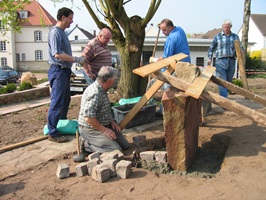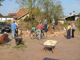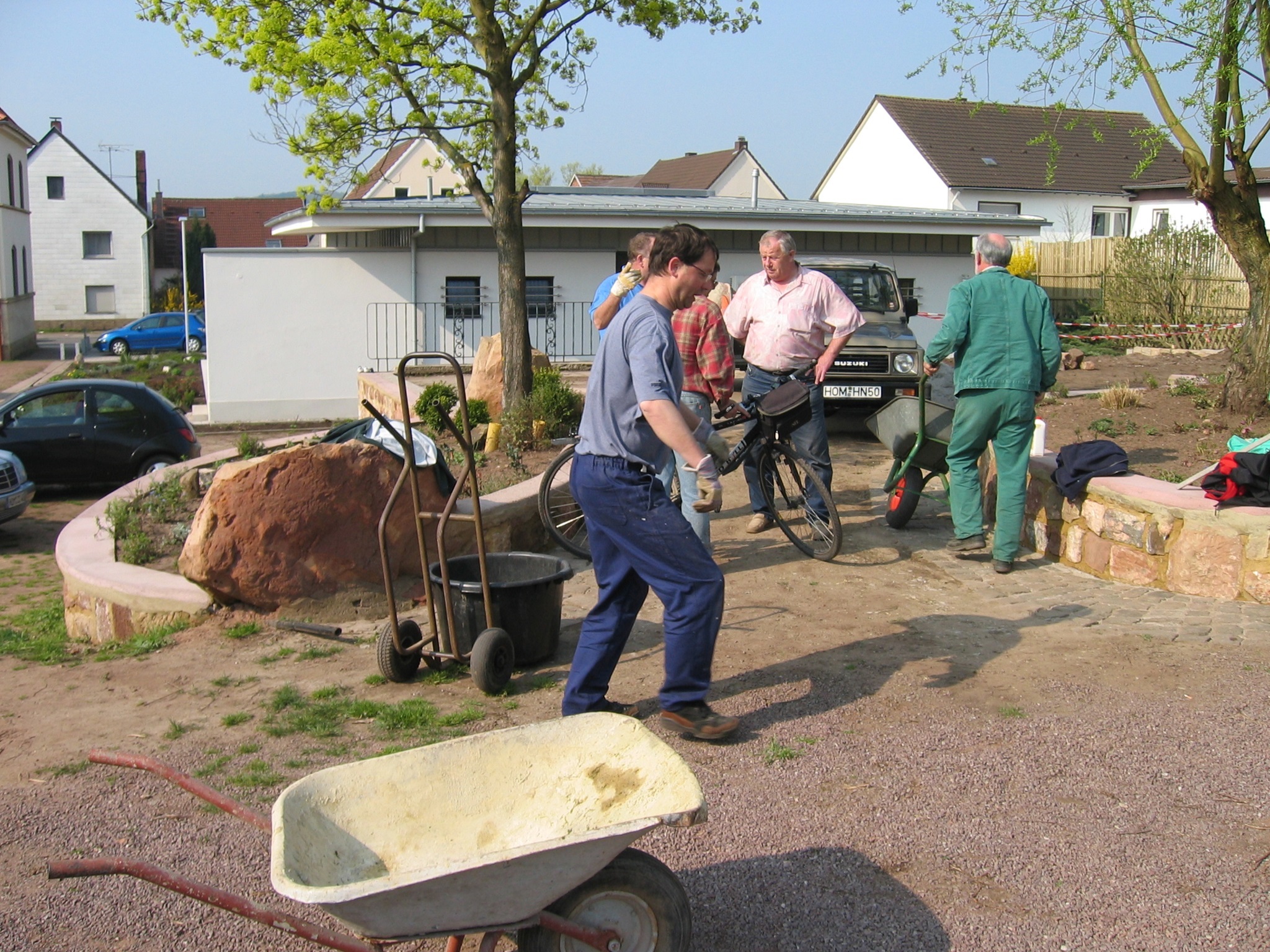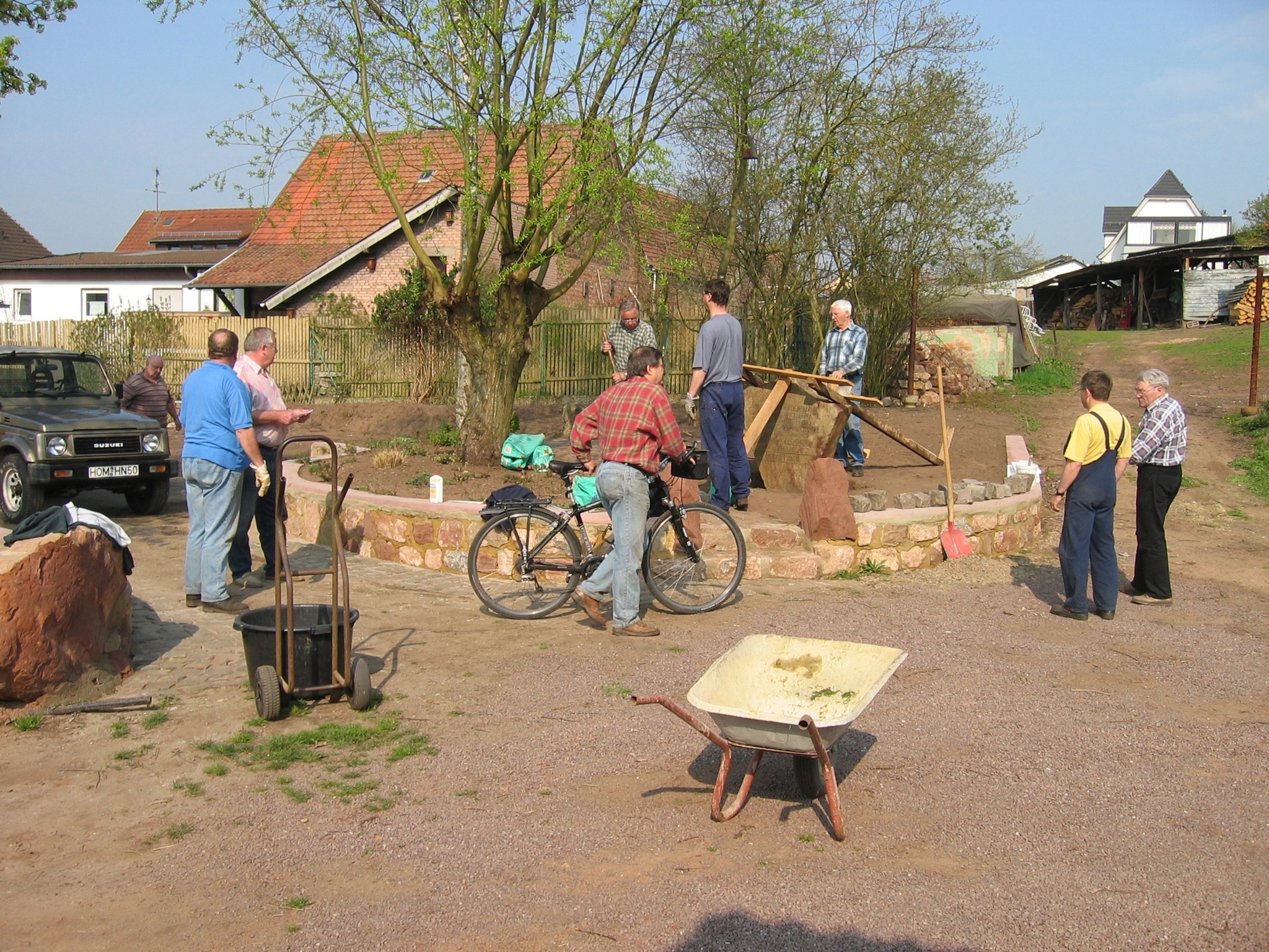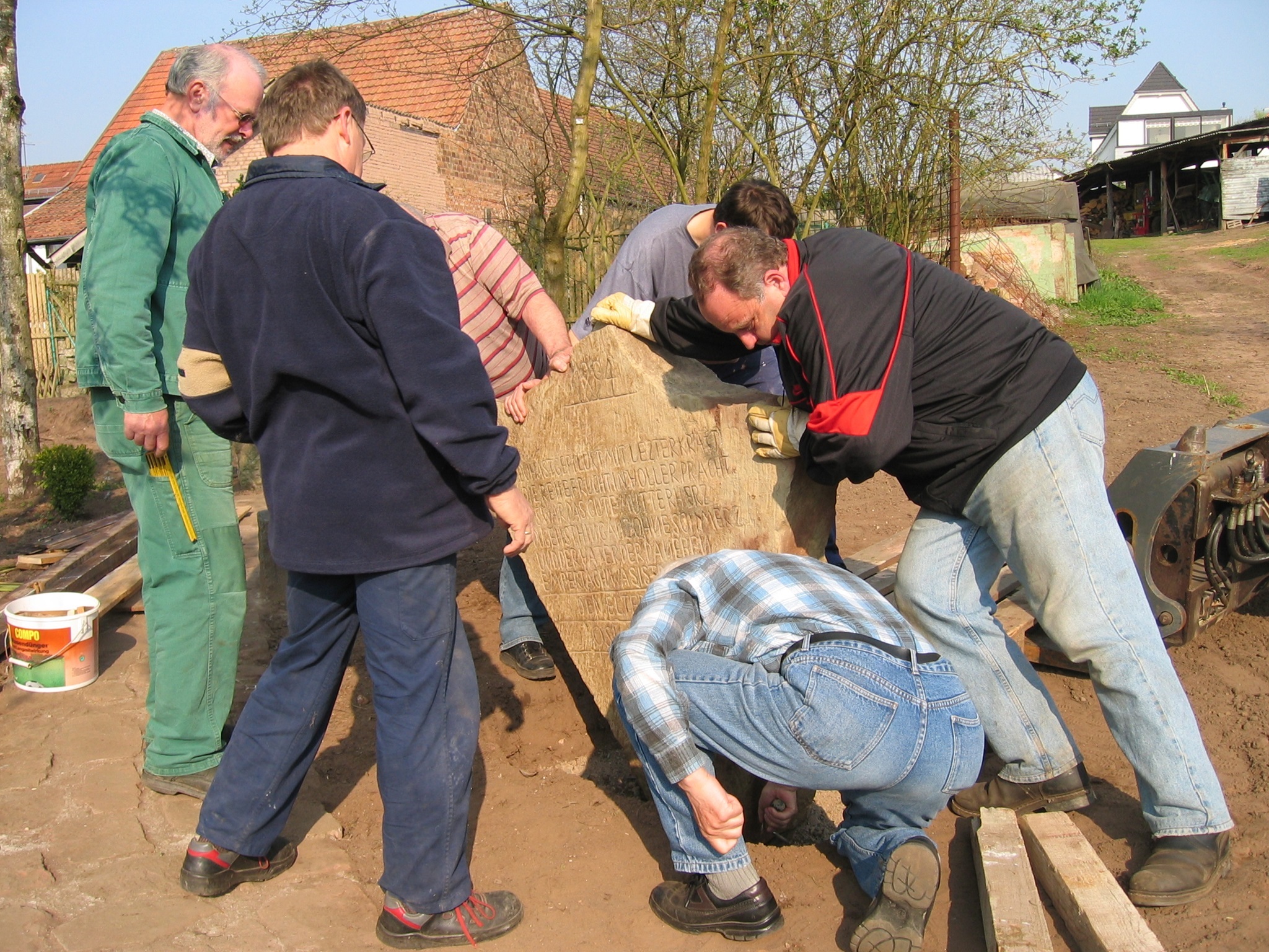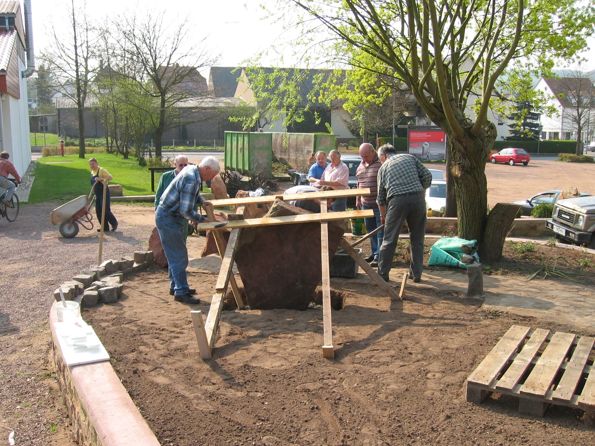 Der im Jahr 2006 vom OGV auf dem Dorfplatz aufgestellte Findling stammt aus dem Steinbruch Saubrunnen. Die eingravierte Gedenkinschrift wurde bereits 1894 von Oskar Linn verfasst.