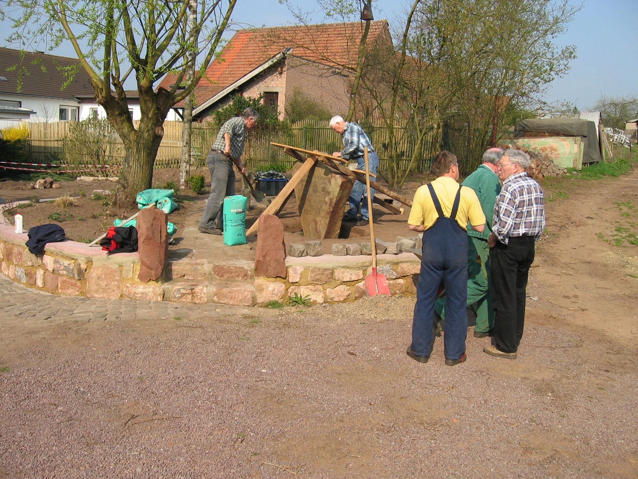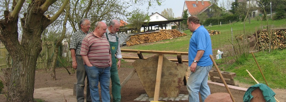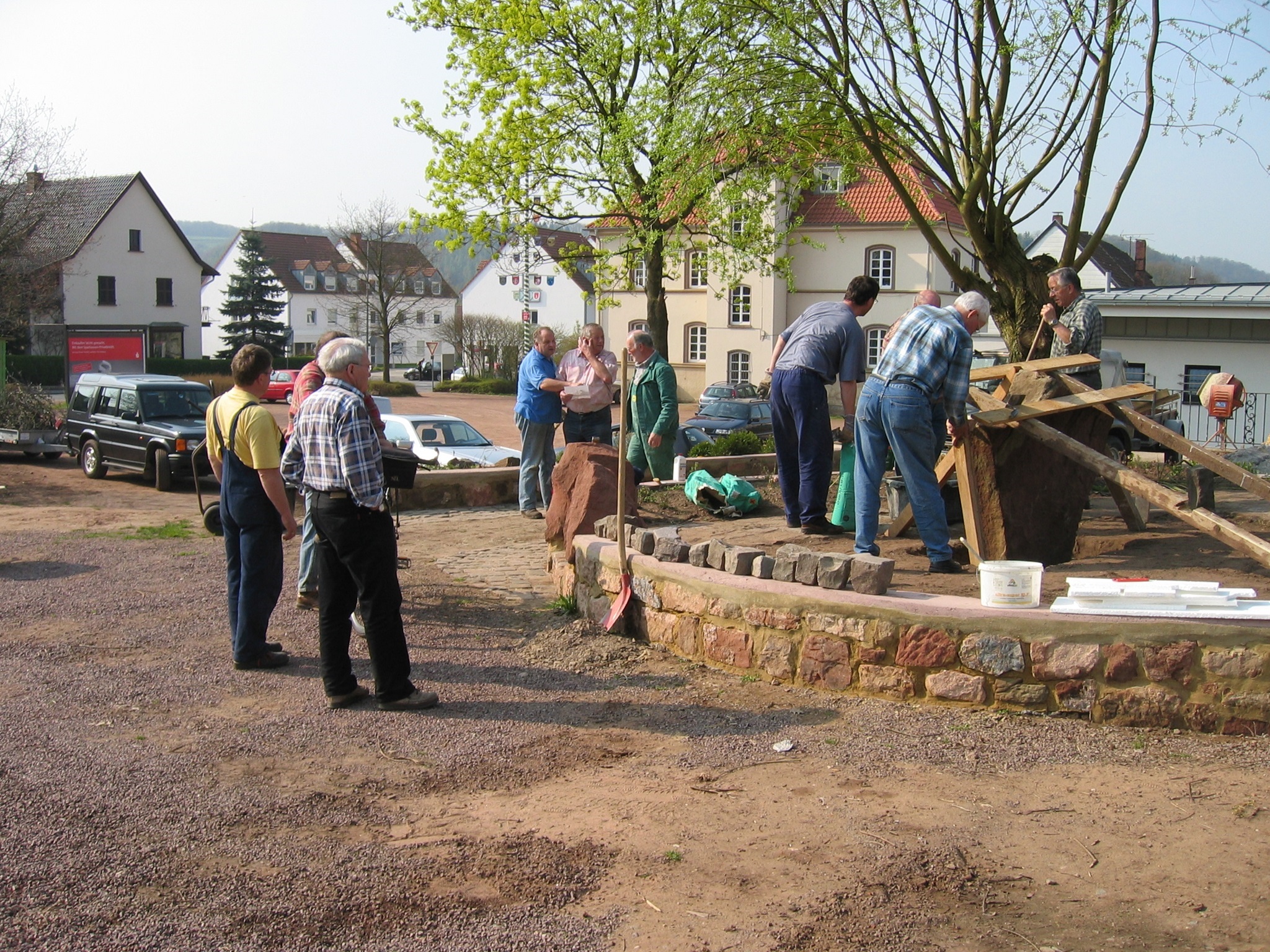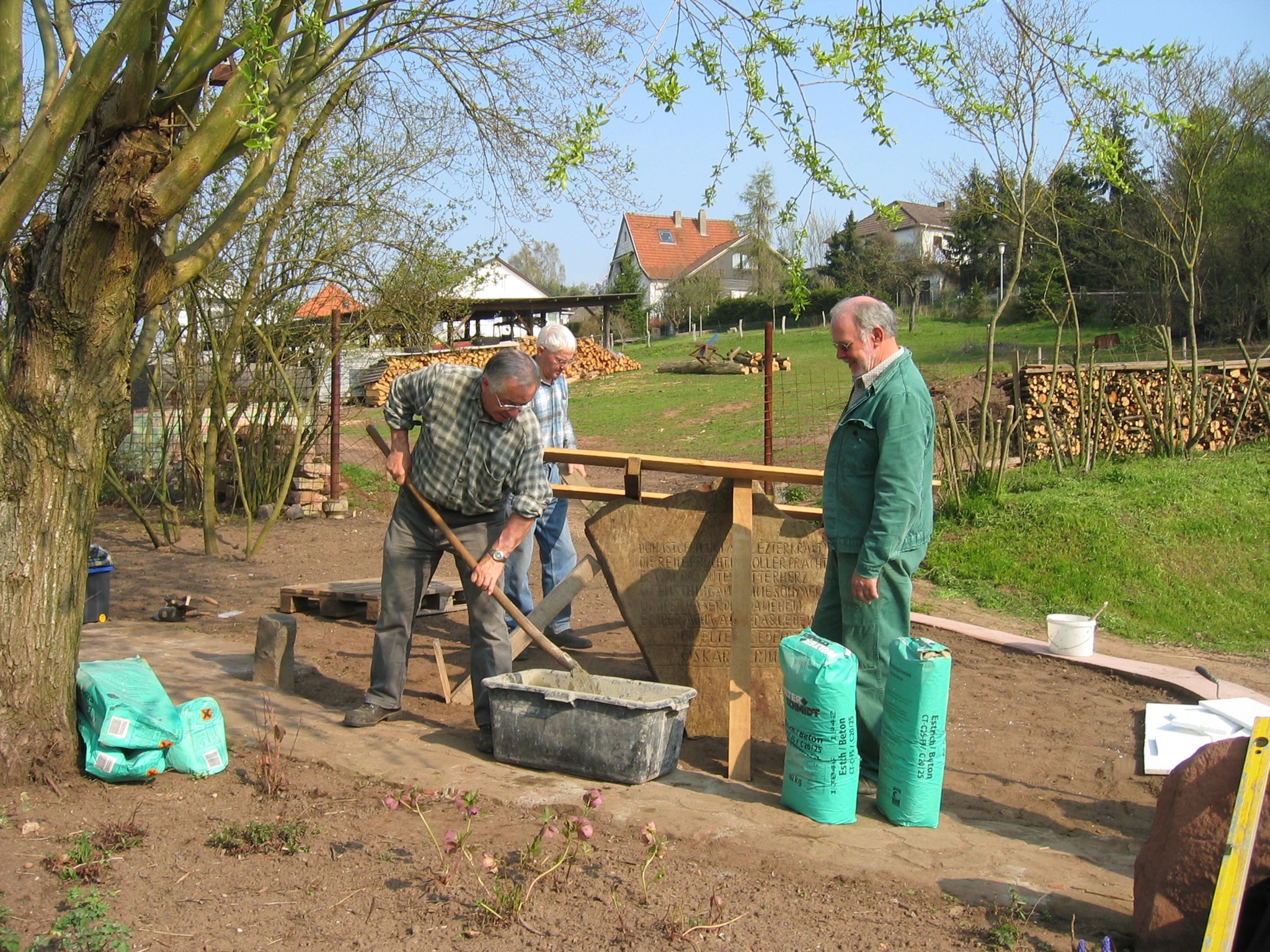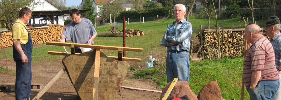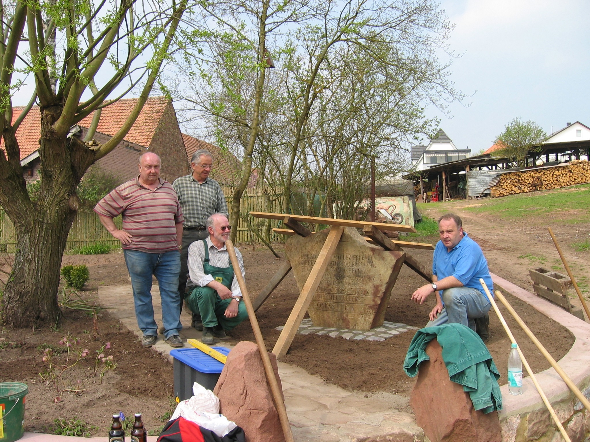 Der im Jahr 2006 vom OGV auf dem Dorfplatz aufgestellte Findling stammt aus dem Steinbruch Saubrunnen. Die eingravierte Gedenkinschrift wurde bereits 1894 von Oskar Linn verfasst.