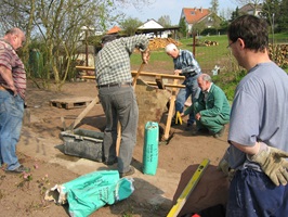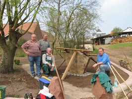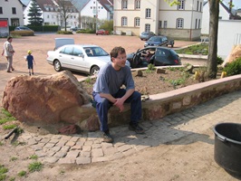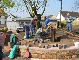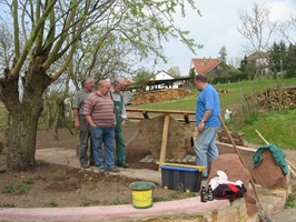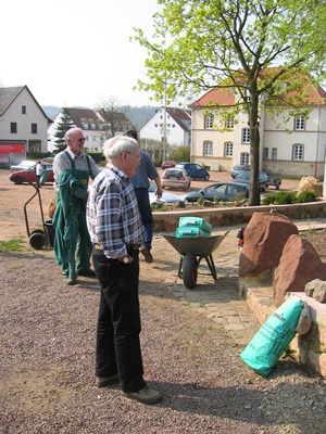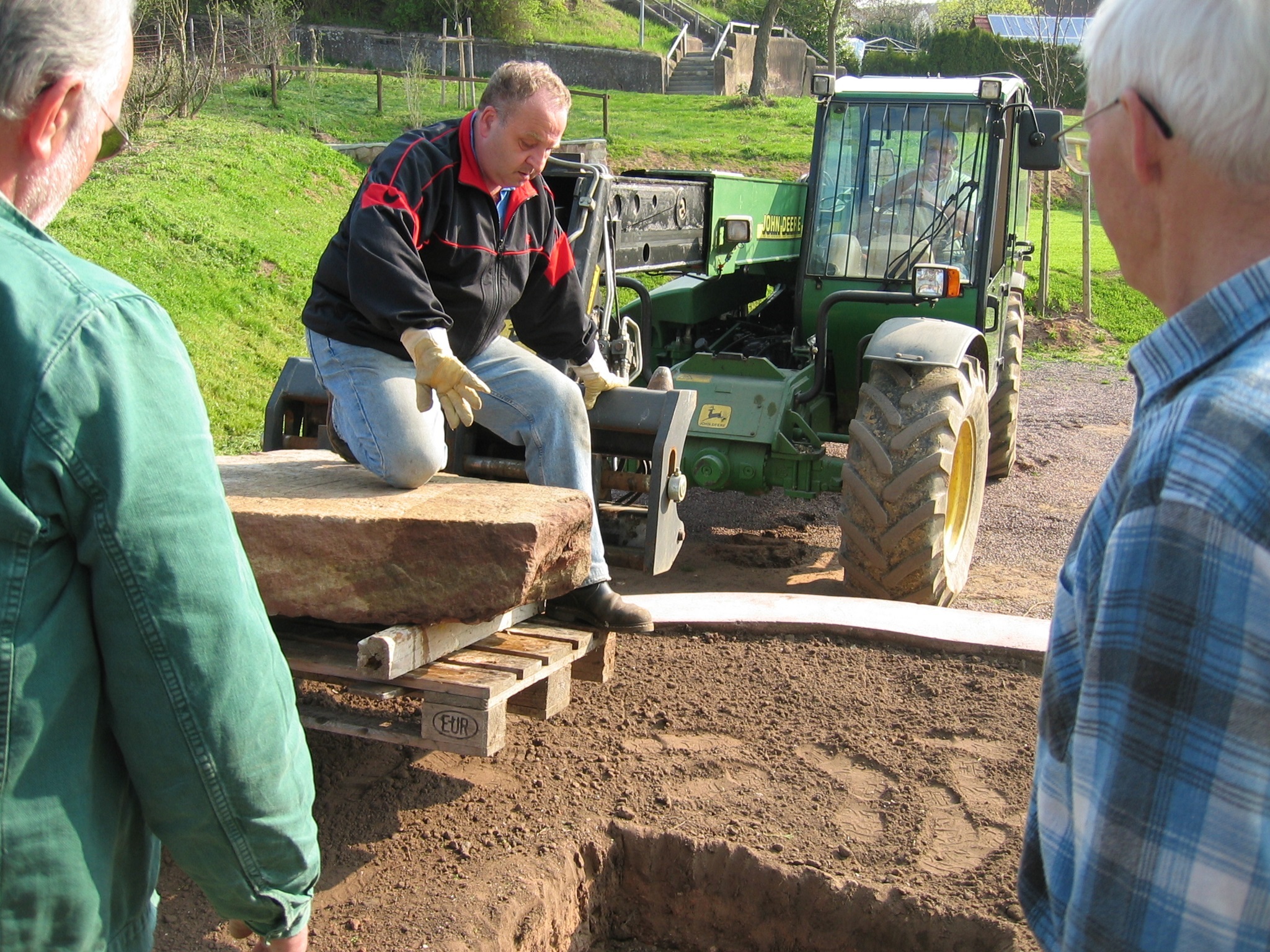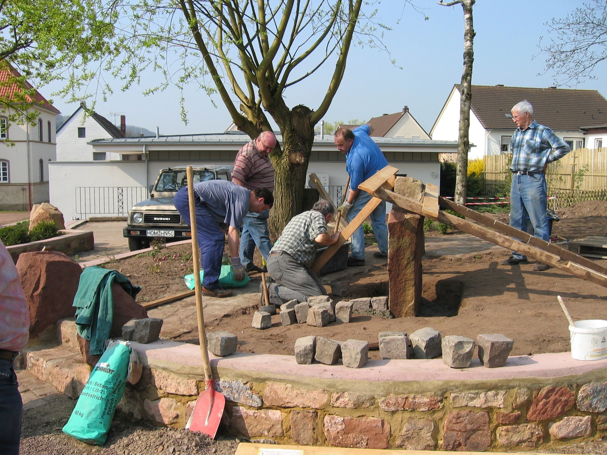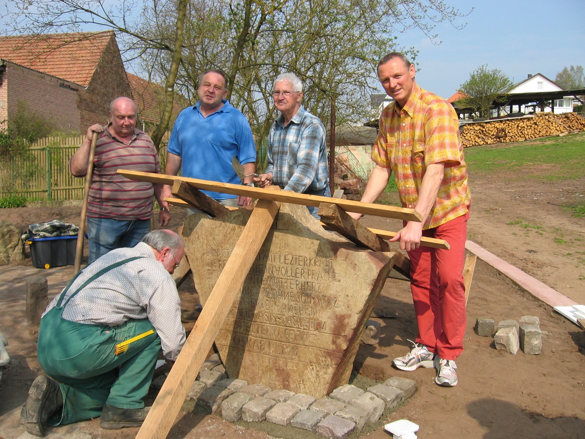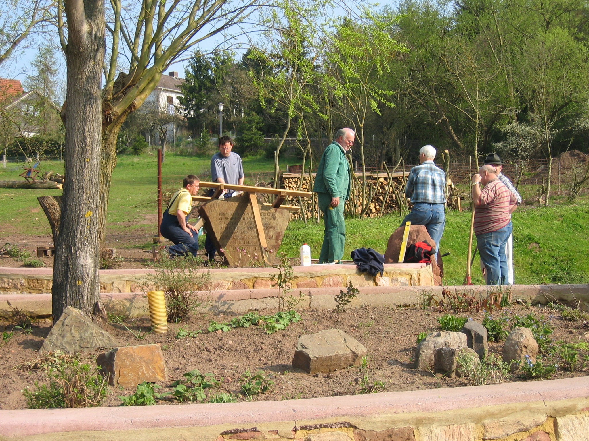 Der im Jahr 2006 vom OGV auf dem Dorfplatz aufgestellte Findling stammt aus dem Steinbruch Saubrunnen. Die eingravierte Gedenkinschrift wurde bereits 1894 von Oskar Linn verfasst.